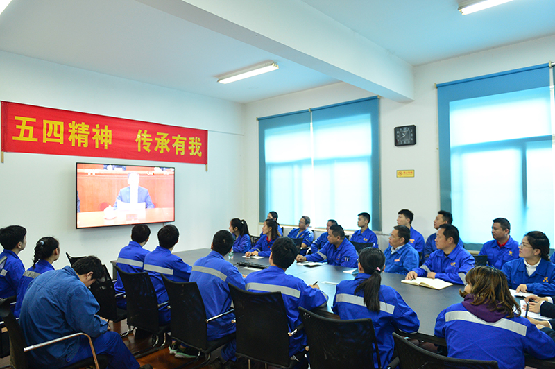 儀式結束后,公司領導左少懷、宋光鑫帶領各二級團委團干在會議室學習觀看了習近平總書記五四講話。