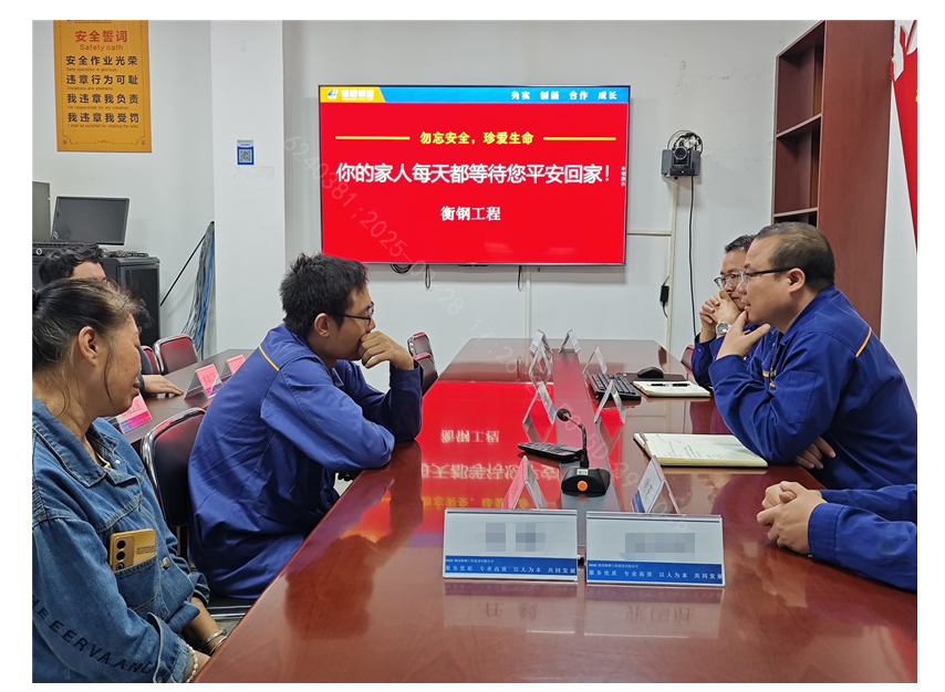 “您的家人每天都等待您平安回家”,9月25日下午,衡鋼工程會議室的電子顯示屏上,醒目打出了這一溫馨提示語,該公司安全環保科正組織約談安全積分被扣6分以上的員工及其家屬。